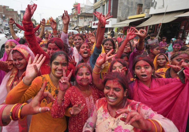 Indickí hinduisti tancujú počas festivalu Durga Puja v Prayagraj, Uttar Pradesh, India, v sobotu 12. októbra 2024. Foto: SITA/AP