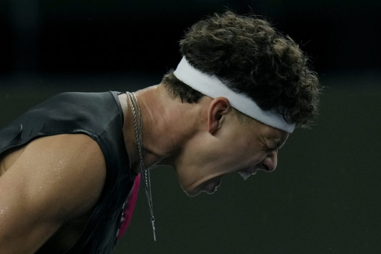 Americký tenista Ben Shelton počas zápas na turnaji Masters v Šanghaji, v ktorom podľahol krajanovi Sebastianovi Kordovi 7:6 (10), 2:6, (6) 6:7. Foto: SITA/AP.