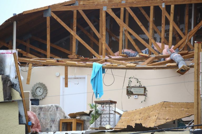 Škody po búrke, ktorá sa prehnala Floridou. Foto: Douglas R. Clifford/Tampa Bay Times via AP.