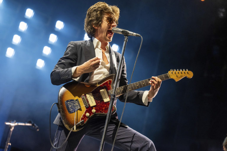 Alex Turner zo skupiny Arctic Monkeys počas vystúpenia v Ameris Bank v Alpharette (štát Georgia). Foto: SITA/Photo by Paul R. Giunta/Invision/AP