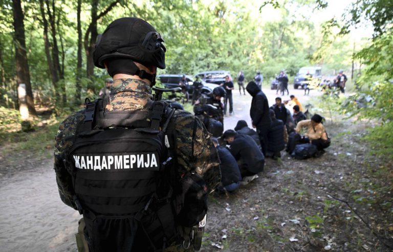 Srbská polícia zaistila stovky migrantov pozdĺž hraníc s Maďarskom. Pri razii našla aj automatické zbrane. Foto: SITA/Serbian Ministry of Interior via AP