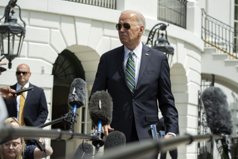 Prezident Joe Biden sa v utorok 13. augusta 2024 vo Washingtone prihovára novinárom pri odchode z Bieleho domu na výlet do New Orleans v štáte La. Foto: SITA/AP