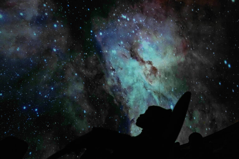 Silueta dieťaťa je zobrazená počas predstavenia v planetáriu Iziko v Kapskom Meste v Južnej Afrike v utorok 13. augusta 2024 v rámci Svetovej astronomickej konferencie. Foto:SITA/AP