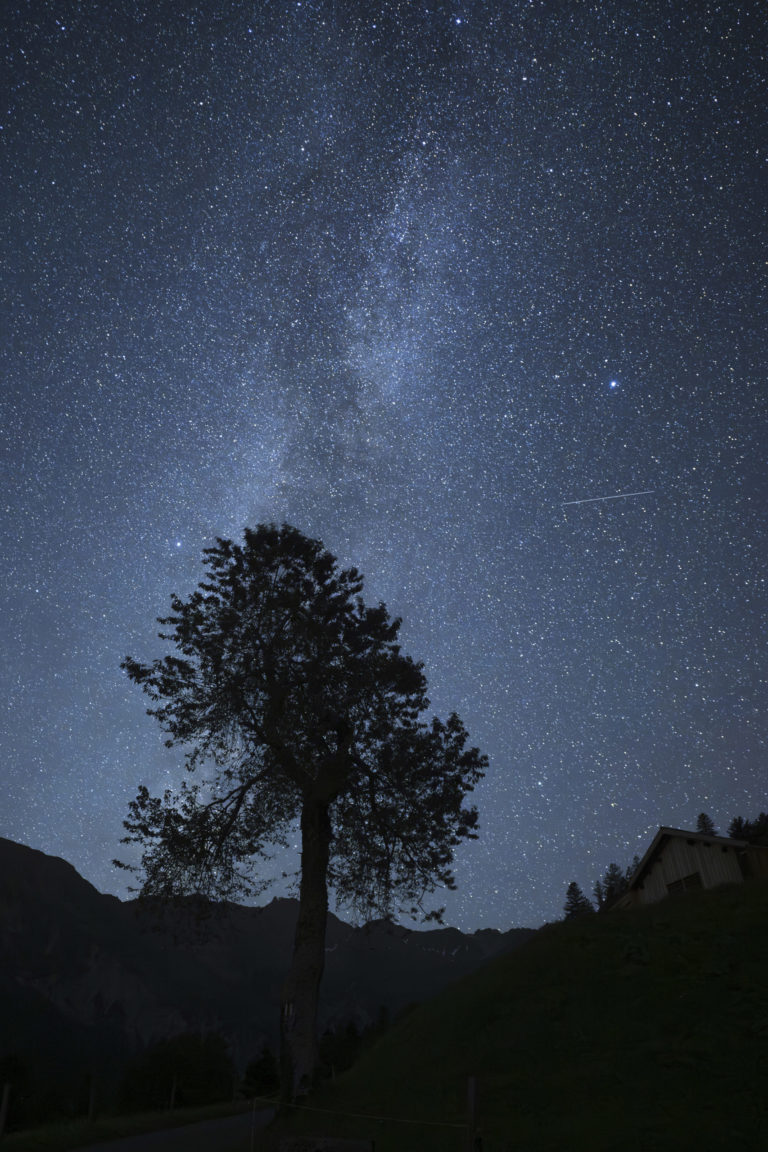 Meteorický roj vo Valens, Švajčiarsko v pondelok 12. augusta 2024. Foto: Gian Ehrenzeller/Keystone via AP