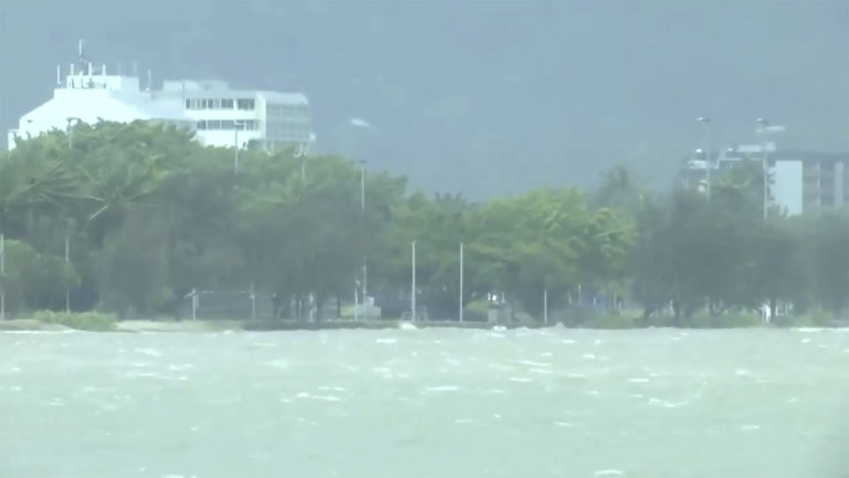 Silný vietor začal vyvracať stromy na severovýchodnom austrálskom pobreží, keď tropický cyklón Jasper naberal na sile. Foto: Australian Broadcasting Corporation via AP.