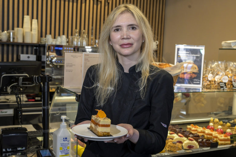 Zodpovedná vedúca cukrárne Asheri Yana Asheri počas tlačovej konferencie v cukrárni Asheri v Bratislave, na ktorej predstavila víťazný dezert súťaže cukrárov o vytvorenie receptu na Bratislavský korunovačný dezert 2024. Bratislava, 13. marec 2024. Foto: SITA/Milan Illík