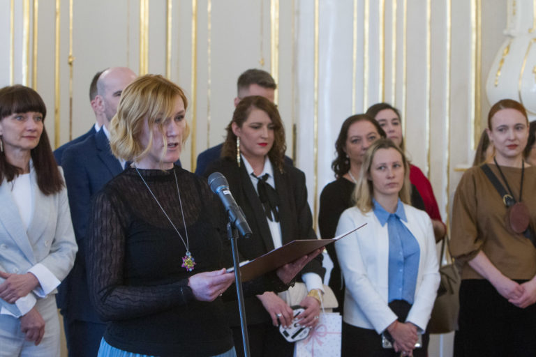 Akademička a odborníčka na dobrovoľníctvo Alžbeta Brozmanová Gregorová počas príhovoru v rámci prijatia dobrovoľníkov Srdce na dlani prezidentkou SR v Prezidentskom paláci. Bratislava, 13. marec 2024. Foto: SITA/Ľudovít Vaniher.
