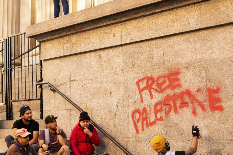 Nápis nasprejovaný na stenu v San Franciscu počas protestu proti samitu APEC (Ázijsko-tichomorská hospodárska spolupráca). Foto: SITA/AP