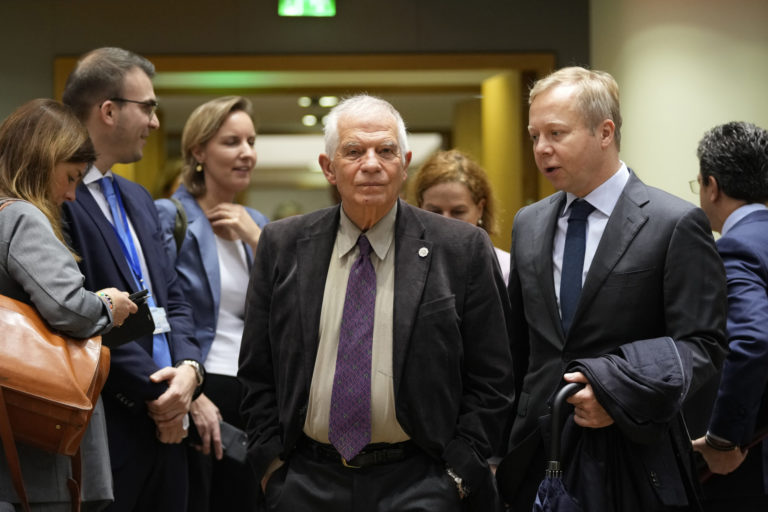 Šéf zahraničnej politiky Európskej únie Josep Borrell (uprostred) na zasadnutí ministrov zahraničných vecí EÚ v budove Európskej rady v Bruseli. Foto: SITA/AP