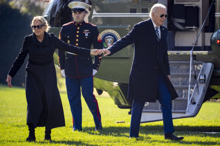 Prezident Joe Biden sa lúči s prvou dámou Jill Bidenovou pred odchodom do Oválnej pracovne. Foto: SITA/AP
