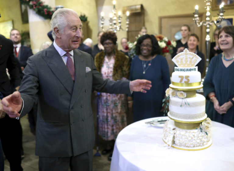 Britský kráľ Karol III. počas oslavy svojich 75. narodenín v Highgrove Gardens v anglickom meste Tetbury. Foto: Chris Jackson/PA via AP