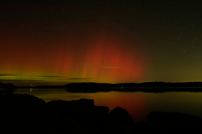 Polárna žiara nad jazerom Perry neďaleko mesta Perry. Kansas, 12. novembra 2025. Foto: AP Photo/Charlie Riedel