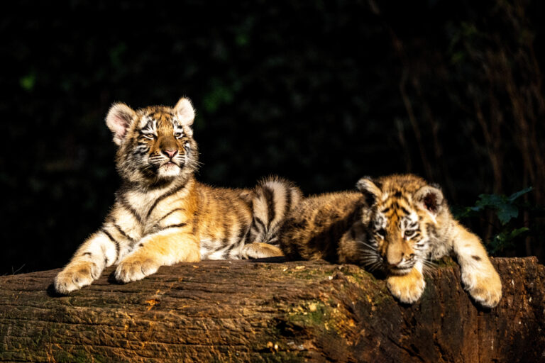 Dve tigrie mláďatá, narodené v júni tigrovi amurskému zo zoologickej záhrady v Kodani. Dánsko, 13. októbra 2025. Foto: (Sebastian Elias Uth/Ritzau Scanpix via AP)