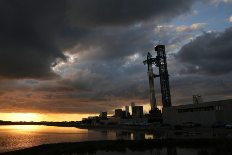 Megaraketa Starship od spoločnosti SpaceX sa pripravuje na skúšobný let zo základne Starbase v Boca Chica. Texase, 13. októbra 2025. Foto: (AP Photo/Eric Gay)