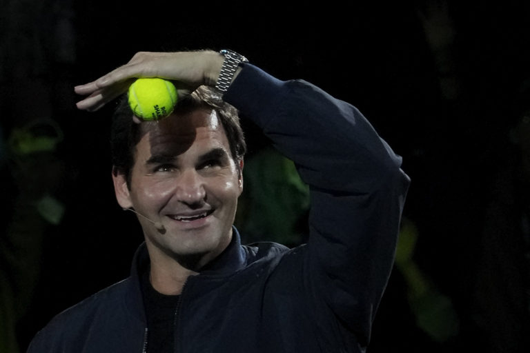 Švajčiarsky tenista Roger Federer sa chystá odpáliť loptičku so svojím podpisom počas Federerovho dňa fanúšikov v čínskom Šanghaji. Foto: SITA/AP.