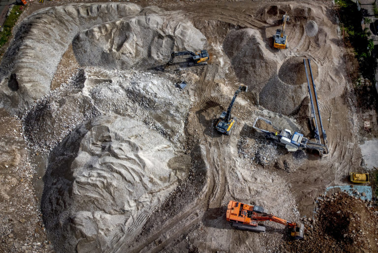 Bagre na stavenisku v centre nemeckého Frankfurtu. 13. september 2024. Foto: SITA/AP