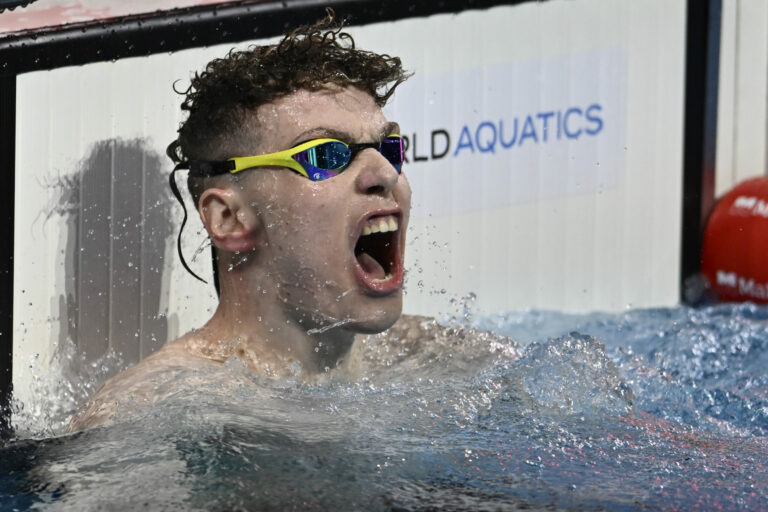 Maďarský plavec Zalan Sarkany po víťazstve vo finále na 800 metrov voľným štýlom na majstrovstvách sveta. Foto: SITA/AP