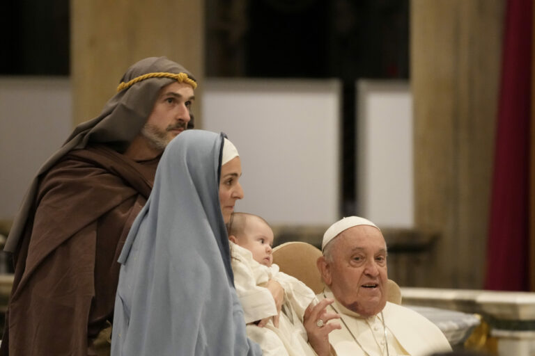 Prezident SR Peter Pellegrini (uprostred) počas odovzdania Betlehemského svetla v Prezidentskom paláci. Bratislava, 14. december 2024. Foto: SITA/Kancelária prezidenta