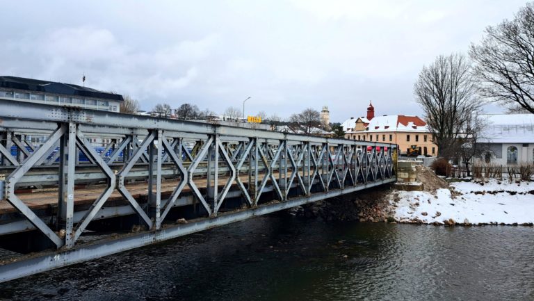 Dočasné premostenia vedľa zrekonštruovaného mosta na ceste I/66 v Kežmarku po rekonštrukcii. Kežmarok, 14. december 2023. Foto: SITA/Mária Frisová,