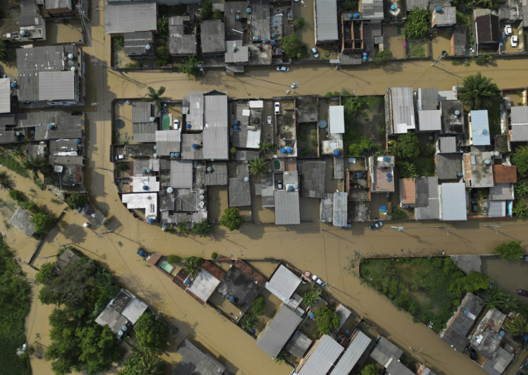 Záplavy v brazílskom Duque de Caxias. Foto: SITA/AP.