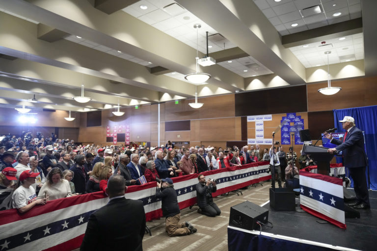Republikánsky kandidát na amerického prezidenta, Donald Trump, hovorí na zhromaždení na Simpson College v Indianole v štáte Iowa. Foto: SITA/AP.