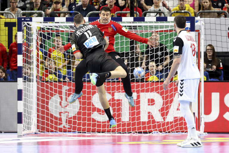 Zápas na ME v hádzanej medzi Nemeckom a Severným Macedónskom. Foto: S'ren Stache/dpa via AP.
