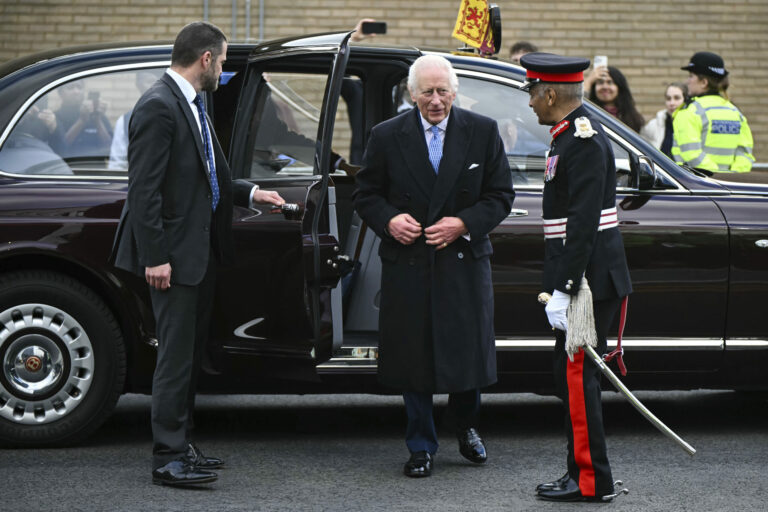 Britský kráľ Karol III, centrum, prichádza, aby slávnostne otvoril centrum Coronation Food Project, ktoré sa nachádza v Deptford Trading Estate v juhovýchodnom Londýne, vo štvrtok 14. novembra 2024, v deň svojich 76. narodenín a prvého výročia projektu Coronation Food Project. Foto: Justin Tallis/Pool Photo via AP