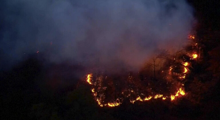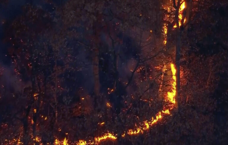 Požiar, ktorý vypukol v parku na severnom cípe Manhattanu v Inwood, NY, v stredu 13. novembra 2024. Foto: WABC-TV via AP