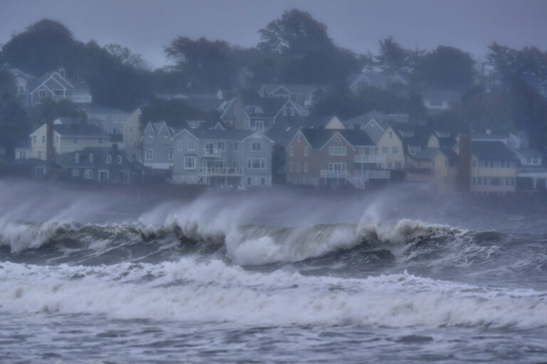 Náraz vĺn Atlantického oceánu neďaleko pláže Atlantic Beach v Middletowne. Rhode Island, 13. októbra 2025. Foto: (Photo/Steven Senne)