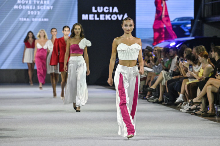 Kolekcia módnej návrhárky Lucie Melekovej počas módnej prehliadky Bratislavské módne dni (BMD) LEXUS 2023 - Finále projektu Nové tváre módnej scény v Rafinery Gallery. Foto: SITA/Milan Illík.