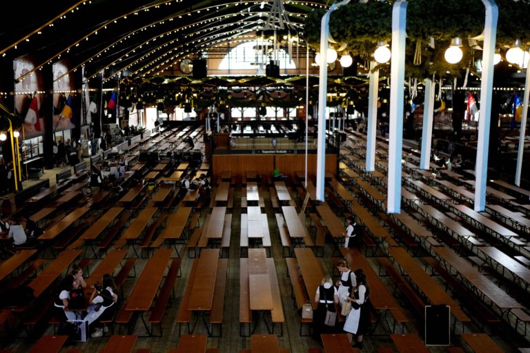 Prípravy na 188. Oktorberfest v Mníchove. Najväčšia pivná slávnosť na svete sa bude konať od 16. septembra do 3. októbra 2023. Foto: SITA/AP.