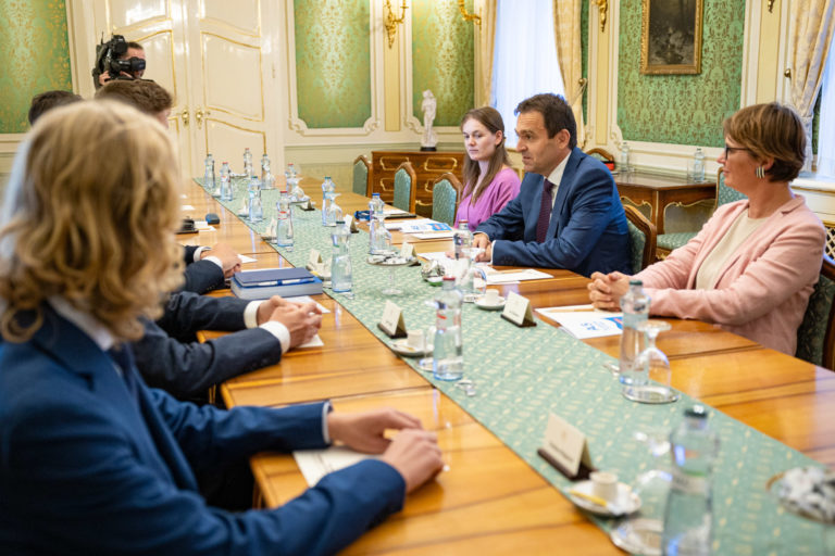 Premiér Ľudovít Ódor počas rokovania so zástupcami Aliancie stredoškolákov na tému: Odliv mozgov do zahraničia a riešenie tejto situácie, na Úrade vlády SR. Foto: SITA/Jana Birošová.