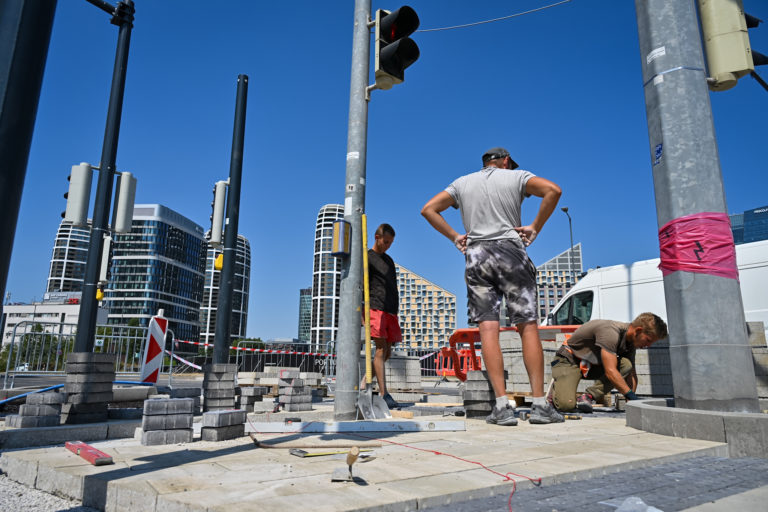 Priebeh stavebných prác na križovatke ulíc Prístavná, Košická a Landererova pri Moste Apollo v Bratislave, kde má po rekonštrukcii vzniknúť nová inteligentná križovatka. Bratislava, 14. august 2024. Foto: SITA