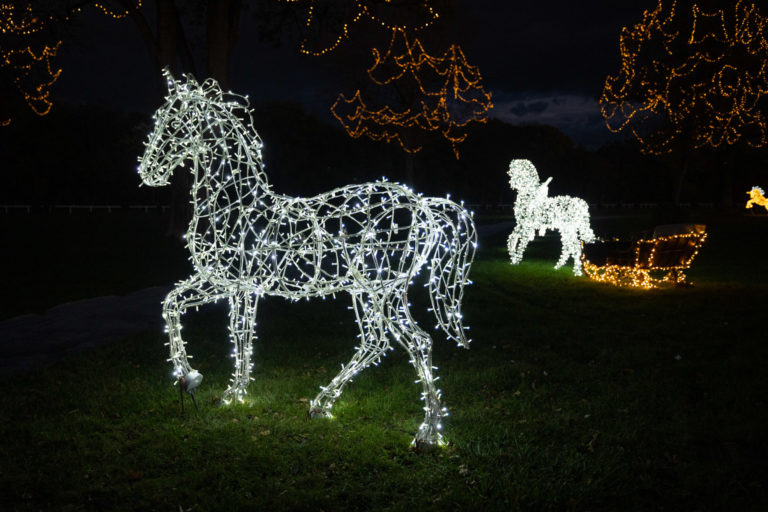 Svetelné sochy počas rozsvietenia prvého svetelného parku na dostihovej dráhe v bratislavskej Petržalke s názvom Svetlá rozprávajú. Bratislava, 15. november 2023. Foto: SITA/Jana Birošová