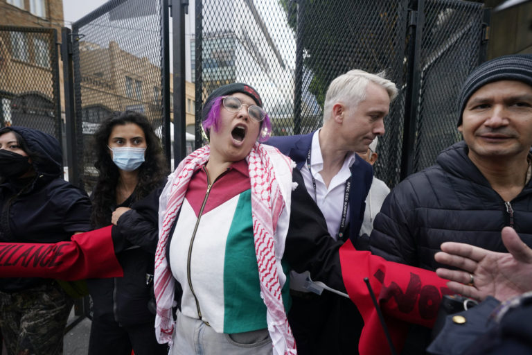 Demonštranti na proteste proti samitu APEC v San Franciscu. Foto: SITA/AP