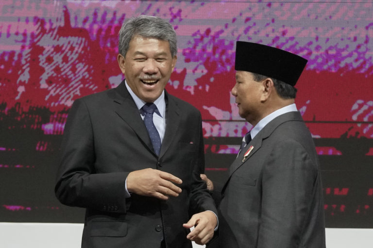 Indonézsky minister obrany Prabowo Subianto (vpravo) s malajzijským ministrom obrany Mohamadom Hasanom počas neformálneho stretnutia ministrov obrany. Foto: SITA/AP