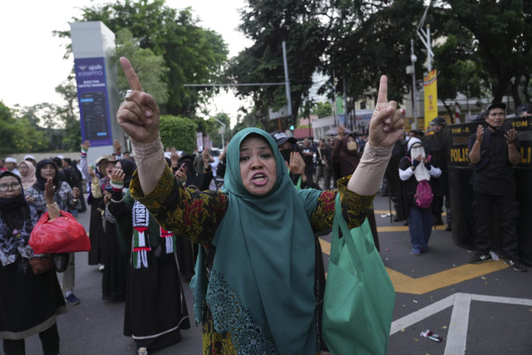 Skupina konzervatívnych moslimov zorganizovala zhromaždenie, na ktorom žiadala zrušenie koncertu Coldplay kvôli podpore LGBTQ+ komunity zo strany kapely. Foto: SITA/AP