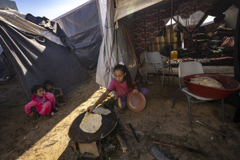 Palestínčania vysídlení v dôsledku izraelského bombardovania pásma Gazy. Foto: SITA/AP