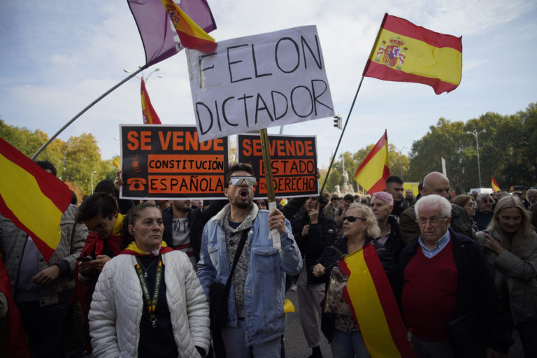 Ľudia protestujú počas rozpravy o investitúre deň pred tým, ako sa líder socialistov snaží získať podporu snemovne na vytvorenie novej vlády. Foto: SITA/AP