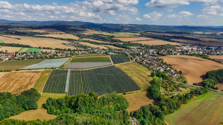 Pohľad na Pragerovy sady v Libine na Šumpersku. Nápojárska skupina Kofola ČeskoSlovensko ročne spotrebuje stovky ton jabĺk. V Pragerových sadoch v Libine na Šumpersku, ktoré zachránila pred výrubom, si pestuje jablká, hrušky, višne a bylinky, čím nadväzuje na svoje aktivity v Rajeckej doline a vo Veleboři. Libina, Česká republika, 15. október 2025. Foto: SITA/Kofola