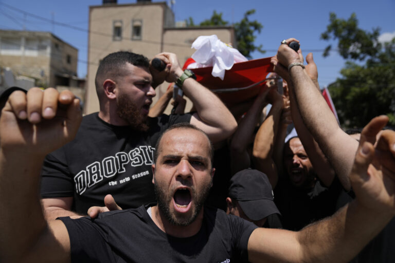 Pohreb palestínskej obete útoku izraelských osadníkov na Západnom brehu Jordánu. Jit, 16. august 2024. Foto: SITA/AP