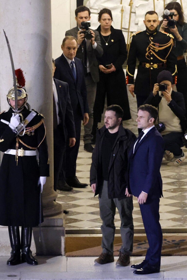 Francúzsky prezident Emmanuel Macron podpíše s Volodymyrom Zelenskyjom bilaterálnu bezpečnostnú dohodu s cieľom poskytnúť „dlhodobú podporu“ vojnou zničenej krajine. Foto: SITA/AP