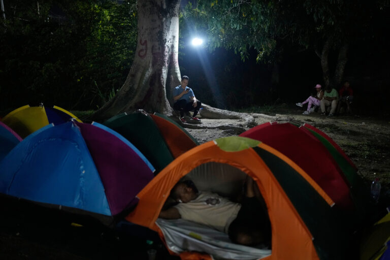 Príbuzní ľudí, ktorých považujú za politických väzňov, táboria pred väznicou Rodeo I v Guatire. Venezuela, 15. januára 2026. Foto: AP Photo/Matias Delacroix