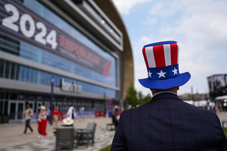 Delegát z Minnesoty Aaron Eberhart počas druhého dňa Národného zhromaždenia republikánov. Foto: SITA/AP