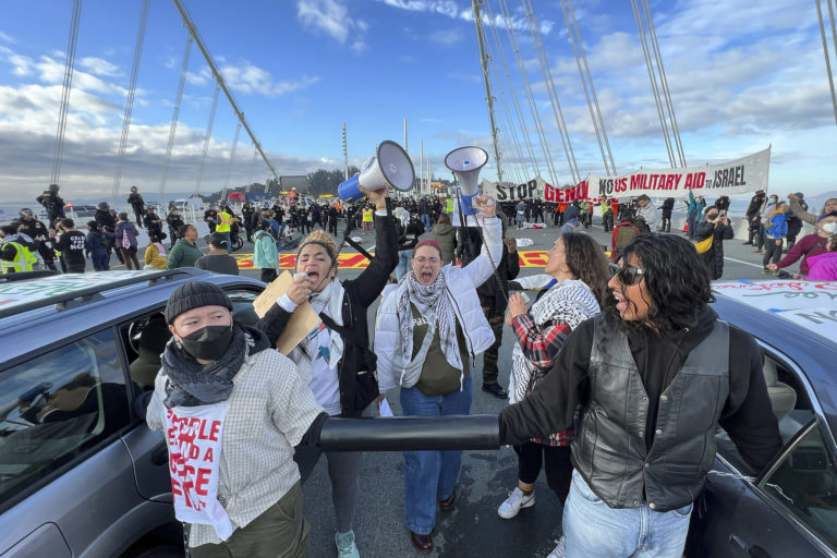 Demonštranti odstavili most v San Franciscu v súvislosti so samitom APEC. Foto: SITA/AP.