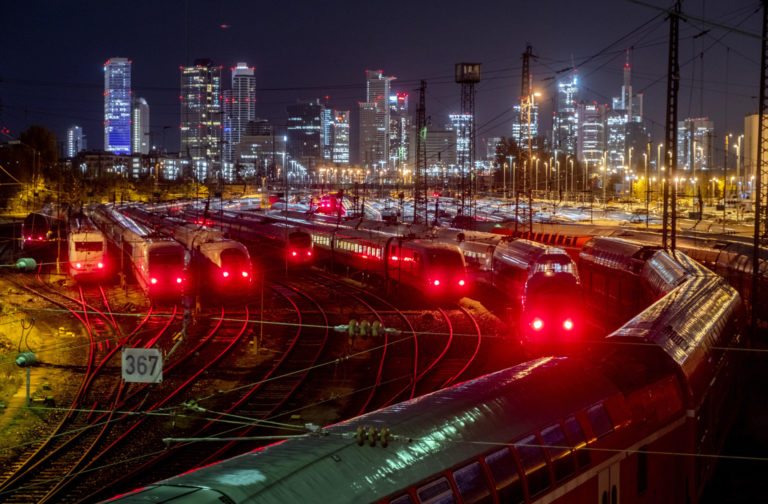 Vlaky sú odparkované pred železničnou stanicou v nemeckom Frankfurte, pretože odbory vyzvali rušňovodičov na 20-hodinový štrajk. Foto: SITA/AP.