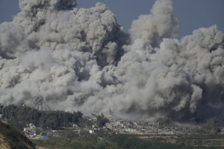 Dym stúpa nad pásmom Gazy po štvrtkovom útoku. Foto: SITA/AP.