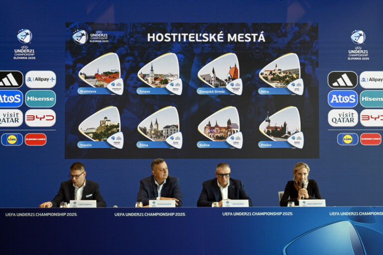 Atmosféra počas tlačovej konferencie Slovenského futbalového zväzu (SFZ) k 25. majstrovstvám Európy ME 2025 vo futbale hráčov do 21 rokov (U21), ktoré sa uskutočnia v lete 2025 na Slovensku. Bratislava, 16. október 2024. Foto: SITA/Milan Illík