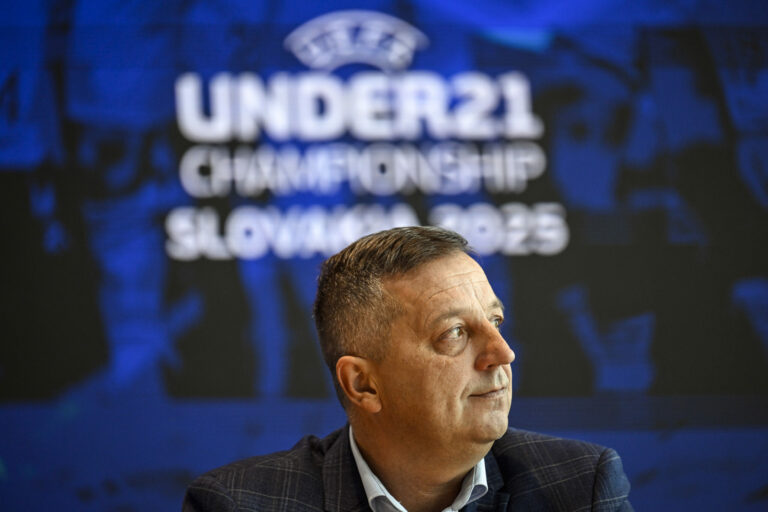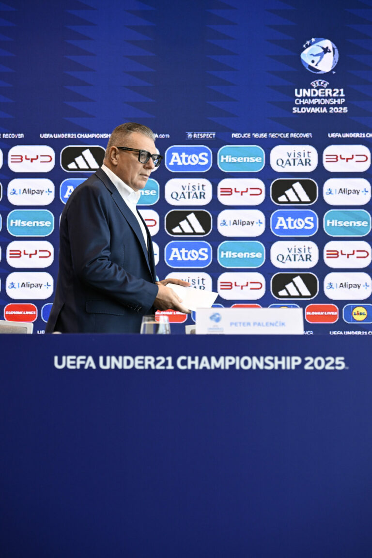 Sprava: Generálny sekretár SFZ Peter Palenčík počas tlačovej konferencie Slovenského futbalového zväzu (SFZ) k 25. majstrovstvám Európy ME 2025 vo futbale hráčov do 21 rokov (U21), ktoré sa uskutočnia v lete 2025 na Slovensku. Bratislava, 16. október 2024. Foto: SITA/Milan Illík