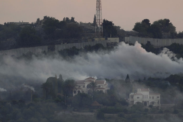 Izraelské ostreľovanie dediny Dahaira, ktorá leží na hraniciach Izraela s Libanonom. Foto: SITA/AP.